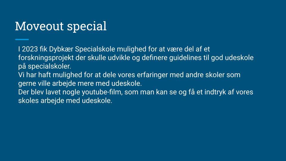 I 2023 fik Dybkær Specialskole mulighed for, at være en del af et forskningsprojekt, der skulle udvikle og definere guidelines til god udeskole på Specialskoler.